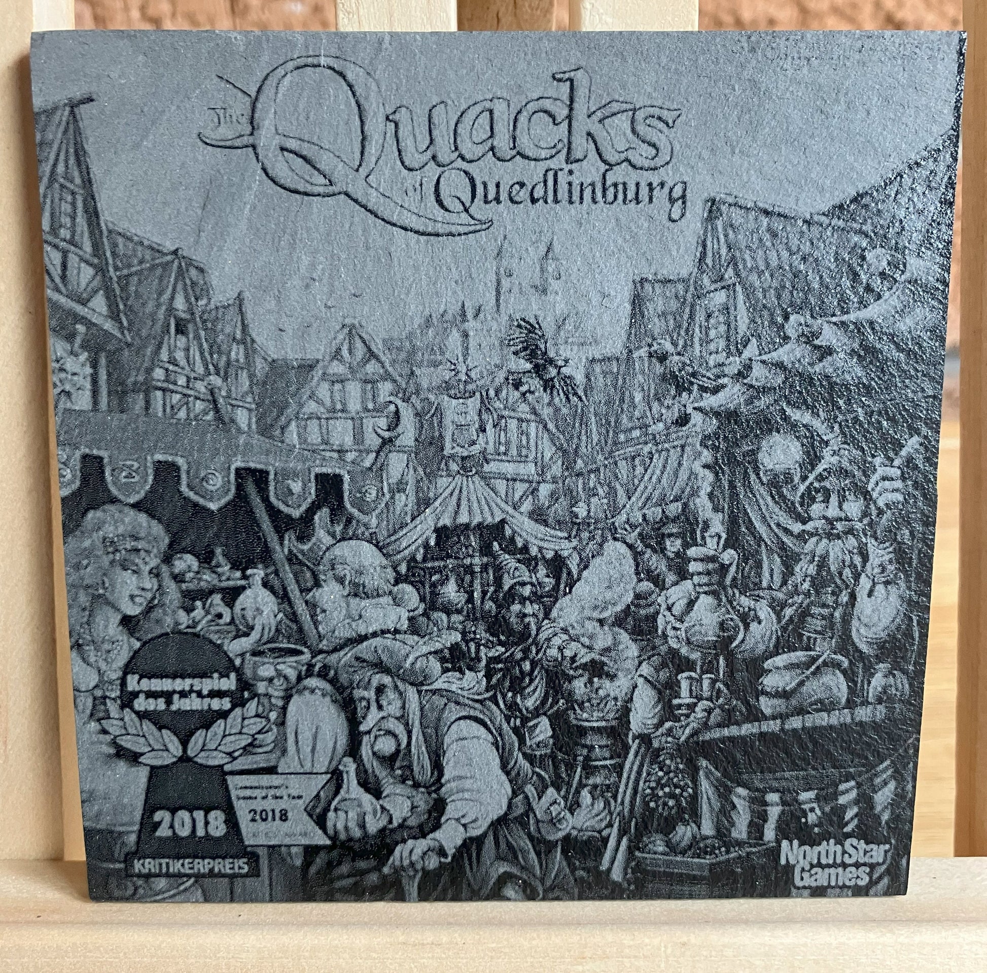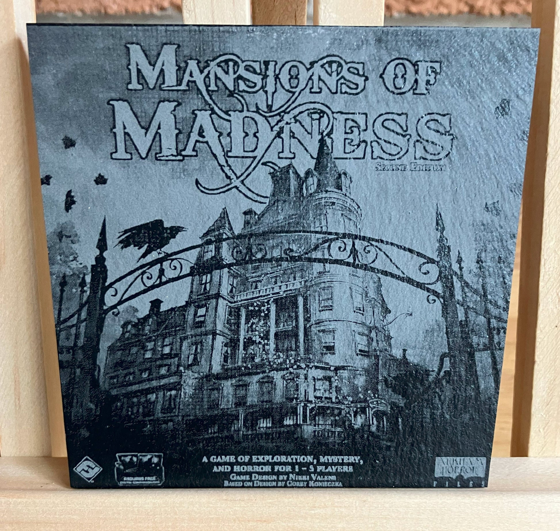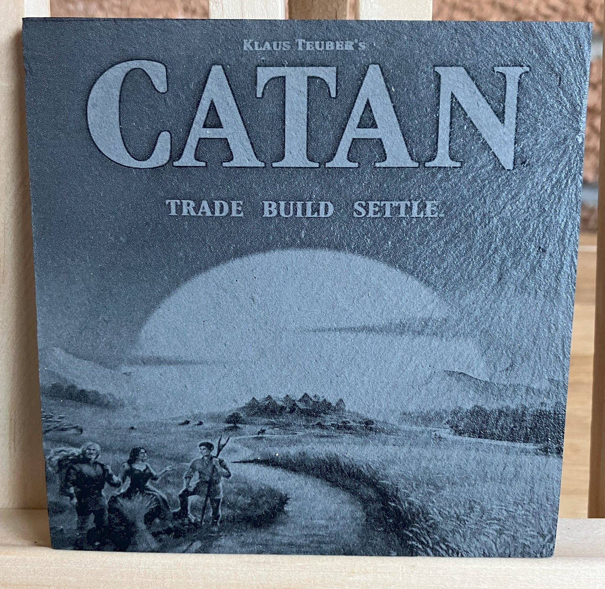 Boardgame inspired slate coasters Choose your game and have it engraved on a slate coaster. A different take on gaming stuff you don't need but must have. A great and fun addition to any gaming night or as a gift for that game obsessed friend or partner.