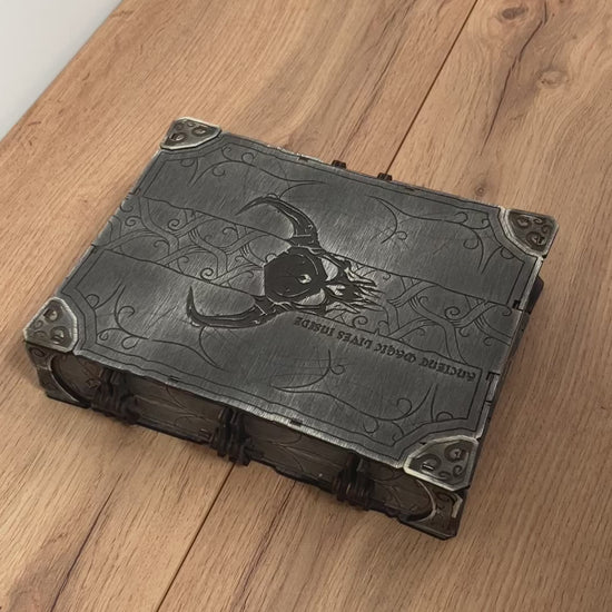 A fantastic looking box in the style of a book. With engravings on all sides it certainly looks the part. Great for holding all sorts and just about anything you wish. With a magnetic clasp it will hold whatever you put in it, safe and secure. Comes in a selection of different colours and is made from 3mm sustainable poplar plywood.