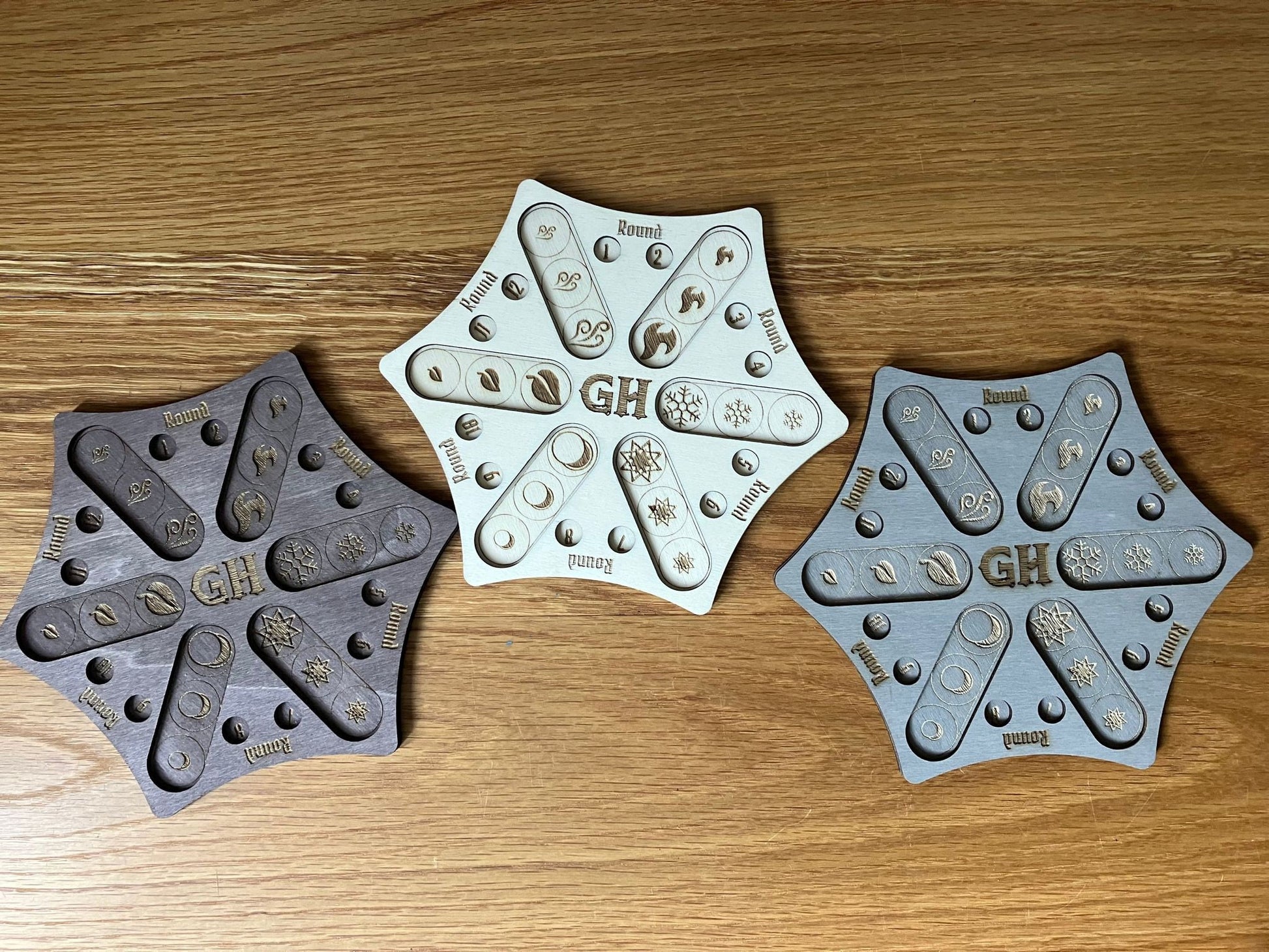 Keep track of the elements and the rounds completed. Fits standard game tokens and come in a choice of colours all sanded to give a beautifully smooth feel. A very simple but great addition to any gaming session. Item comes fully assembled and ready to go, made from sustainable poplar plywood and sanded to give a beautifully smooth feel.