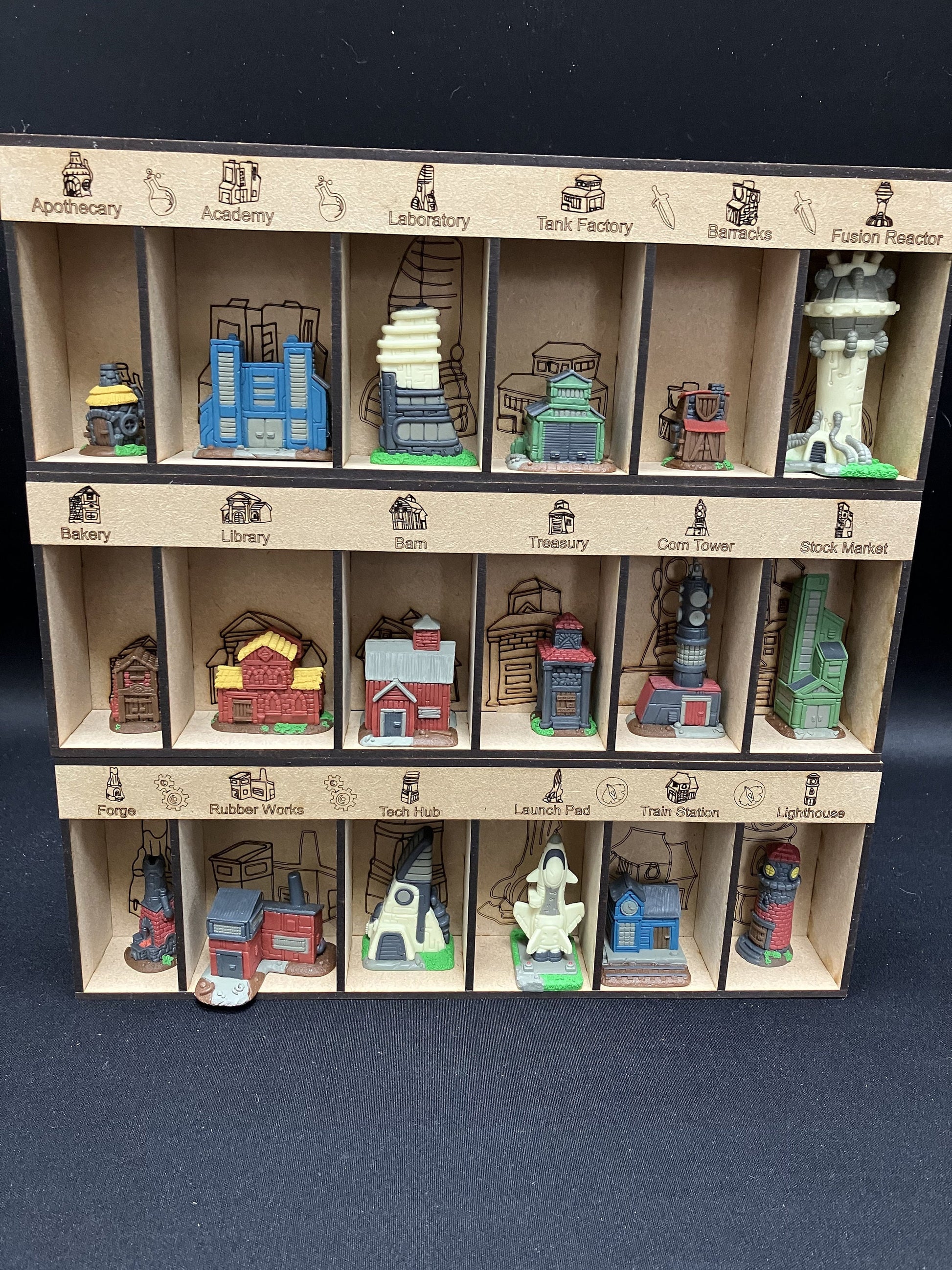 Insert for Tapestry Boardgame. Make gaming that little bit better with this set of inserts for the Tapestry base game. Made from 3mm MDF with game icons on many of the insert, they not only enhance the game play but provide a much better storage solution in the original box, with no lid lift. They speed up setup and breakdown and make accessing pieces in game quick and easy.