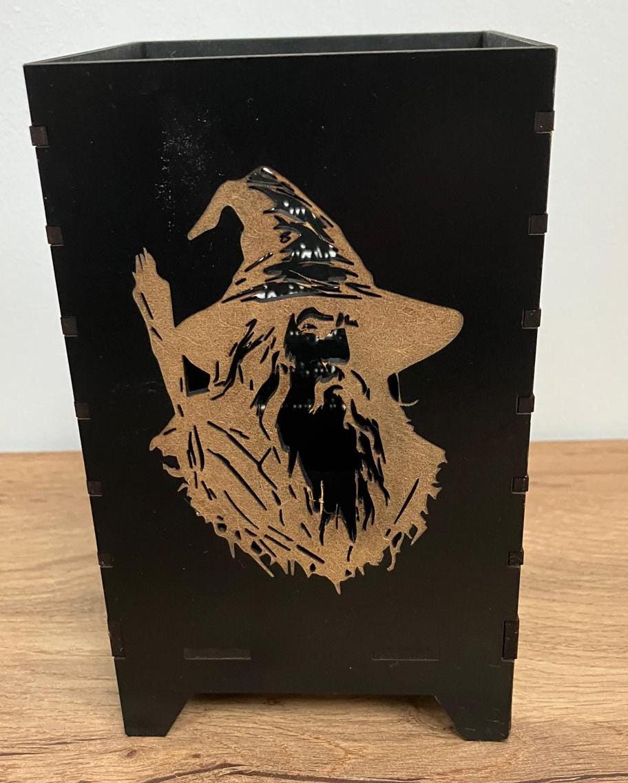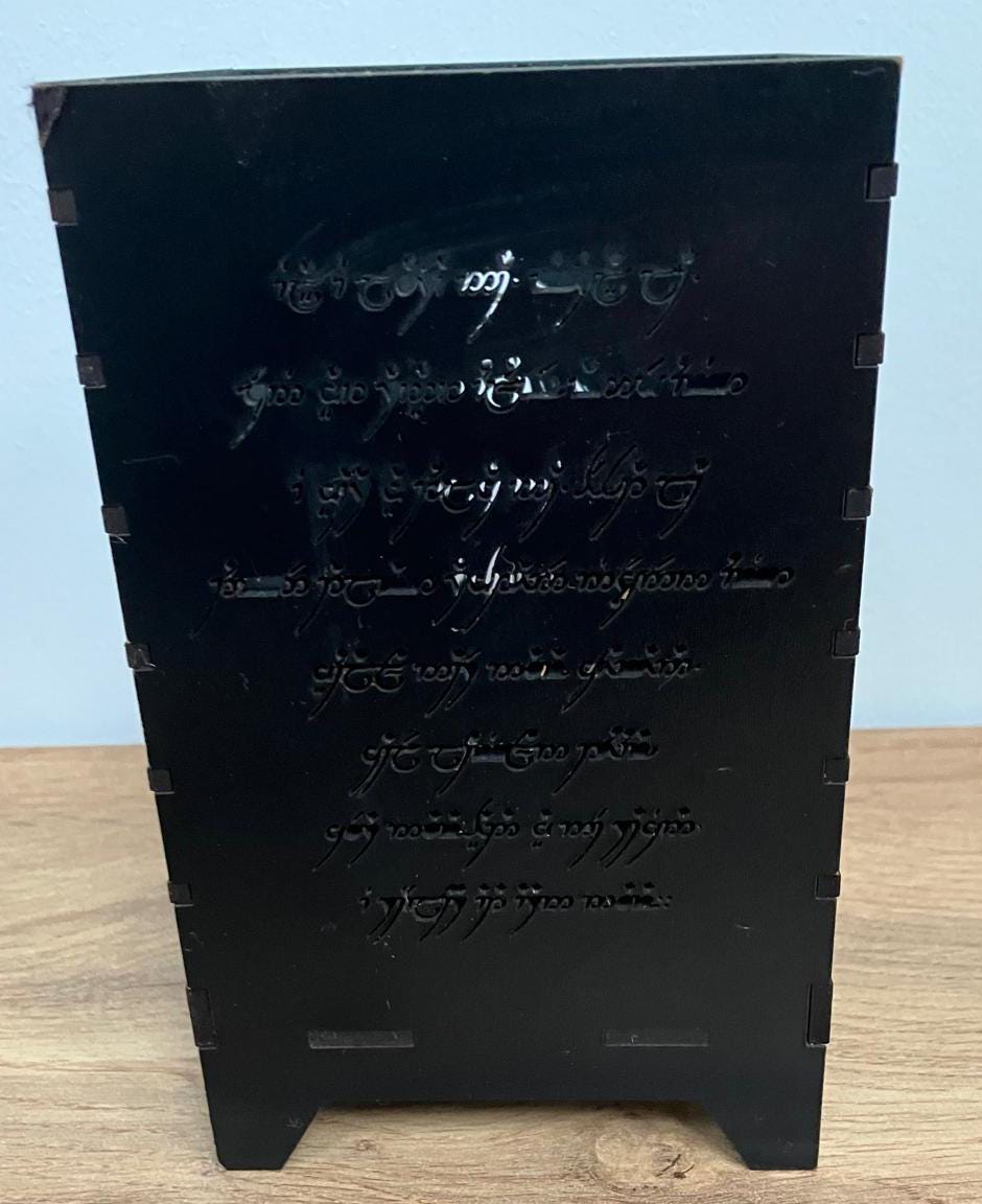 Lord of the Rings themed T-light Holder. A real on theme addition to your gaming experience or just a pretty candle holder. Made from 3mm black MDF it comes fully assembled and ready to use.