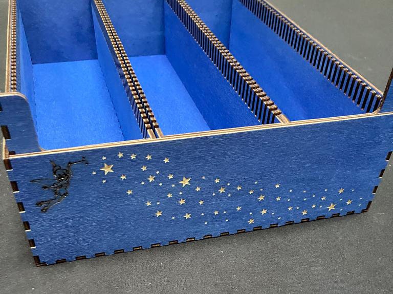 For more detailed pictures and description of the other solutions in the set please see my other listings and take a look at the single and Double box (with extender option) and the Player Deck. Each triple box comes with 15 wooden dividers, more can be purchased from from my shop if you wish. Each box is themed to match the game, with Characters engraved on the sides and end and the game title on the lid.