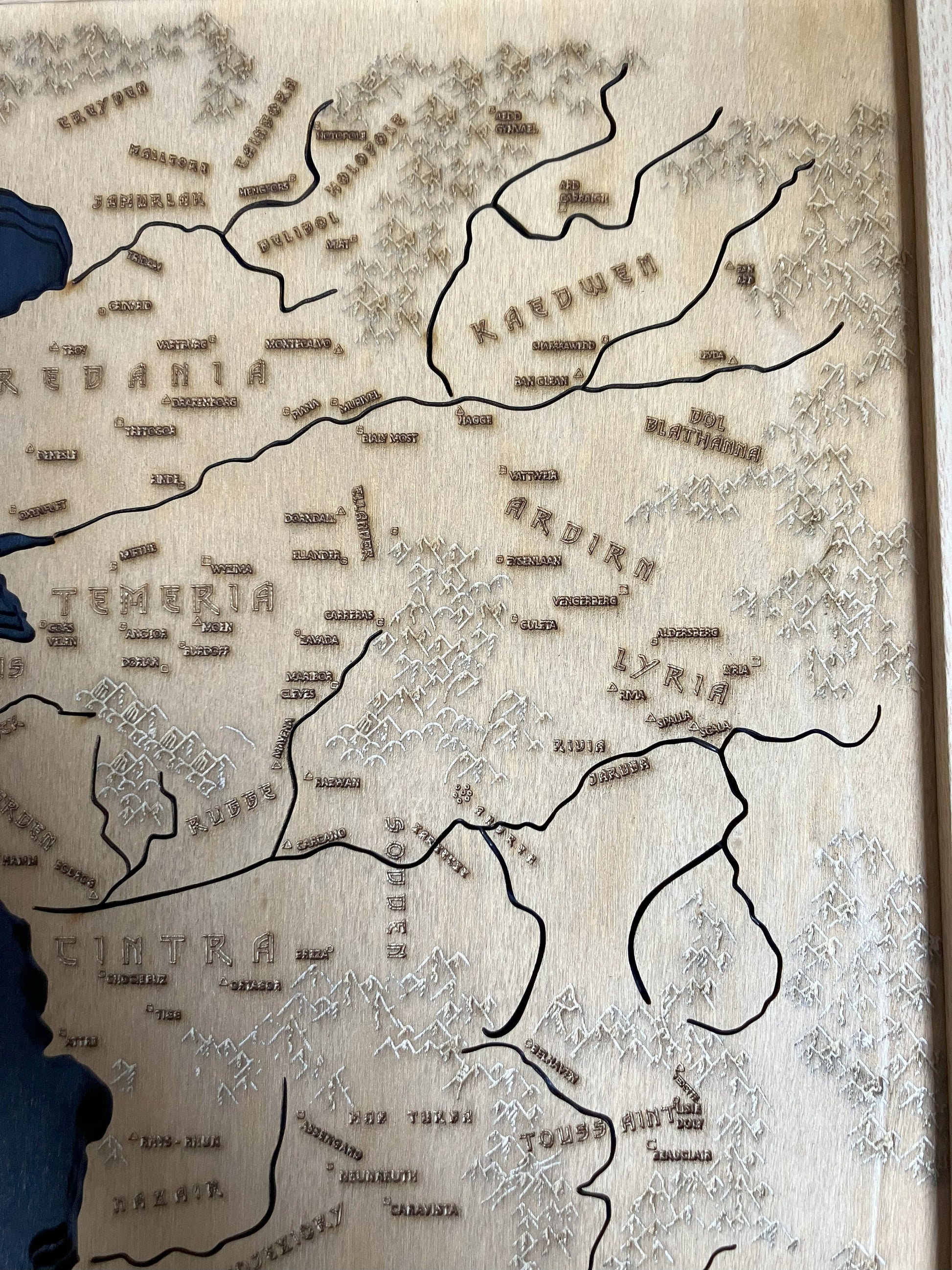 3D relief artwork of the The Witcher map, made from wood and hand stained, it's a great addition to any wall. Comes in an oak coloured frame with glass (removed for pictures) and ready to hang.