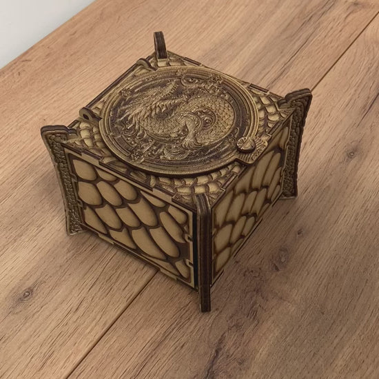 Wooden Dragon Box with integrated hinge and dragon scales engraving