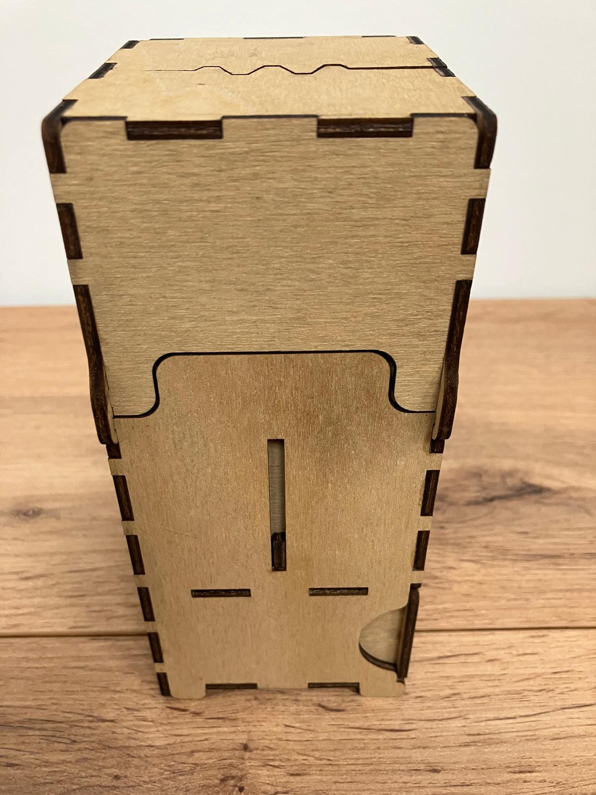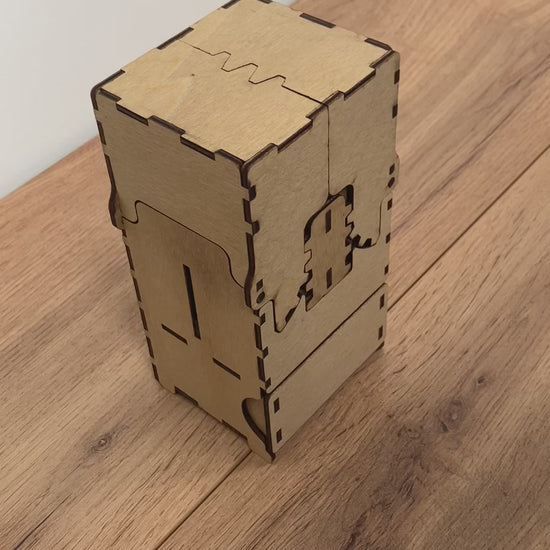 Wooden Gear Box with integrated drawer. Beautifully designed box that lifts the central box up and down by a simple but effective ratchet system. Then holds it in place until you want to gently lower it back and close the it up. Also come with a small drawer to store smaller items, like tokens or dice. Comes in a selection of different colours and is made from 3mm sustainable poplar plywood. If you would like to add a personal touch please let me know and I'm sure I can accommodate your request. Box comes fully assembled and ready to hold whatever you wish.